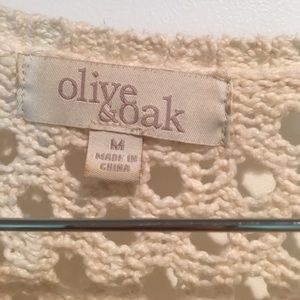 Olive & Oak oversized cream sweater. It has a round neck with a large weave pattern. Super cute with a chambray button down underneath. Mostly cotton and super soft. Only worn maybe 5 times and hand washed and line dried each time.