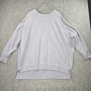 Oversized sweater, cotton blend, relaxed fit, gray pullover, casual wear, ribbed neckline, side slits, drop shoulder, long sleeve, XL size, women's sweater, fall fashion, Aerie