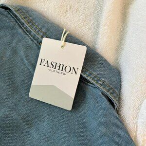 Oversized denim jean jacket, mid length, two chest pockets, two side pockets, 2 large inside pockets. Nice thick fabric (100% cotton), silver jean fasteners.