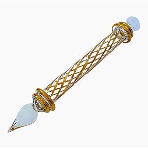 Add a touch of elegance to your holiday décor with this Oversized Teardrop Christmas Ornament—an exquisite, limited edition piece handcrafted in Egypt. Made of glass and featuring a striking gold and white plaid design, this collectible ornament stands approx. 8.5” tall and comes in its original box. A perfect choice for those who love rare and artistic holiday decorations. Ideal for traditional or luxe Christmas themes, this ornament is both a festive showstopper and a treasured keepsake.