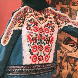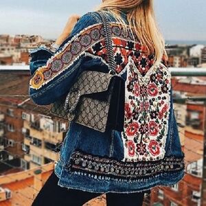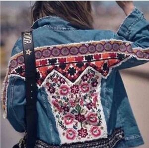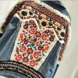 Oversized Embroidered, Tribal Print, Jean Jacket