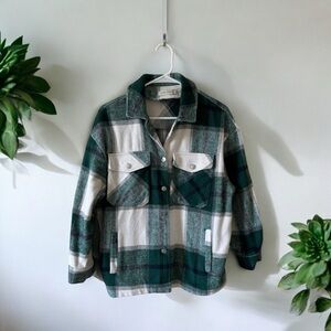 Oversized green/cream flannel shacket. Very cute, medium weight. Excellent condition, only worn a few times.
