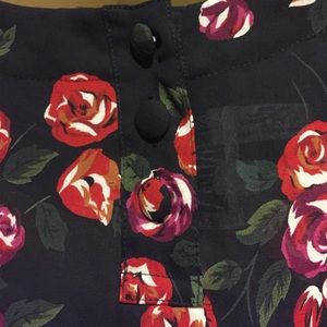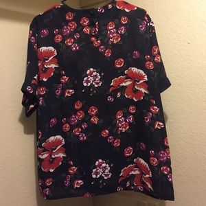 Vintage floral blouse. Navy blue, sheer with pocket on front. 100% polyester
