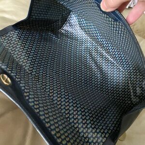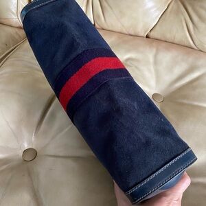 Authentic vintage Gucci Navy Blue suede bag. Good condition. Edges all look great. Light wear to suede. Moisture resistant coating inside for easy cleaning. Closure works well. Easily add your own strap kit to make this a crossbody. This particular bag did not come from a smoke-free home but I have cleaned it and treated it so it isn't too noticeable now. Approx size 12x7x3.5. Posh Ambassador! Vintage Gucci Specialist!