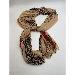 Elevate your accessory game with this Made in India oversized wrap, blending geometric and floral motifs in warm, earthy tones. The semi-sheer fabric drapes beautifully, creating a versatile piece that transitions from scarf to shawl with ease. Perfect for layering, travel, or adding a touch of bohemian polish to your outfit. Crafted from a soft, lightweight material that feels airy yet substantial. Its bold yet neutral palette—black, tan, red, and olive—pairs effortlessly with any wardrobe.