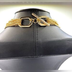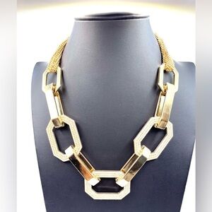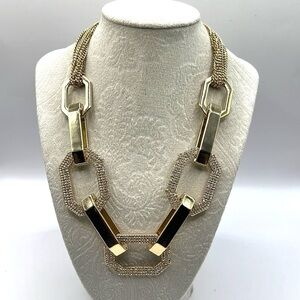 Oversized Gold Chunky Toggle Statement Necklace Rhinestones Geometric Sparkle