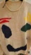 DESCRIPTION: Crew Neck Sweater with rolled loose neckline, long sleeves. Abstract Whimsical Graphic Print. Pullover. Happy Face Sweater. No pockets. No zippers. Dropped shoulder line.