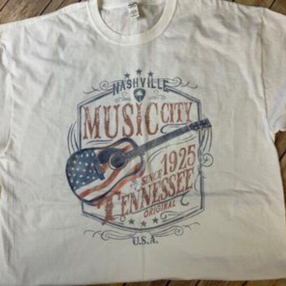 Oversized Graphic Tee Shirt Nashville Music City Adult XL White Country Western