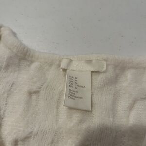 Oversized H&M Size Medium V-Neck Chunky Ivory Rib Cable Knit Sweater Thick with some wool content. This goes down to mid thigh in length. Very stretchy and cozy with dropped shoulders. Measurements in the pictures.