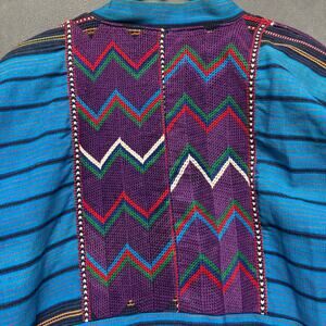 Title: Oversized Hand Knit Mexican Drug Rug Blazer Jacket Button Down Cultural Pockets