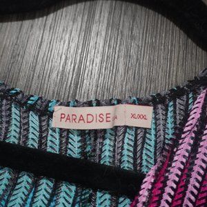 Where vibrant and cheerful colors come together to create a visually stunning piece. The material is a delightful combination of softness and stretch, providing both comfort and flexibility. Resembling a crochet design, the composition of the material adds a touch of intricate elegance. It's thin, lightweight, and slightly see-through, giving it an airy and graceful feel that effortlessly complements its overall charm. Would be great with jeans or leggings with a white tank top underneath or could also be used as a swimcover! Over-sized fit, boxy style, size xl. The material is very light weight.