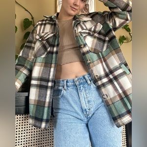 Oversized Lined Plaid Shirt Jacket Shacket