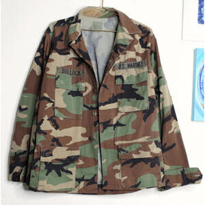 Oversized military jacket. Buttons up the front. Can be worn as a lightweight jacket or heavy shirt. Size medium. pit to pit approx 22 inches, length approx 29.5 inches.