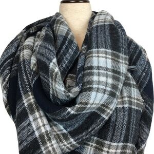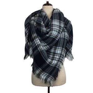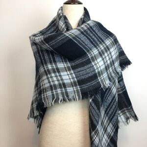 Oversized Plaid Blanket Scarf Wrap Black/White/Olive