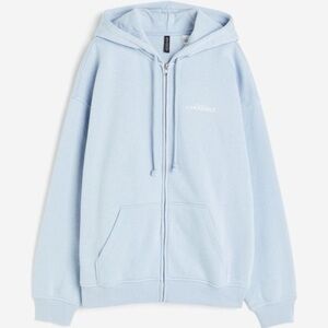 New Oversized hooded sweatshirt jacket with a printed motif at front and soft, brushed inside. Double-layered, drawstring hood, concealed zipper at front, and kangaroo pockets. Heavily dropped shoulders, long sleeves, and ribbing at cuffs and hem. Article number:1162937014 Model size: The model is 179cm/5'10" and wears a size M Length: Long Sleeve Length: Long sleeve Fit: Oversized Style: Hooded jacket Description: Light blue/white, University of Cambridge, University of Cambridge Imported: Yes Concept: DIVIDED