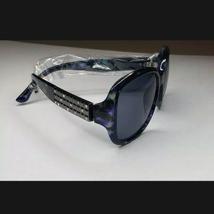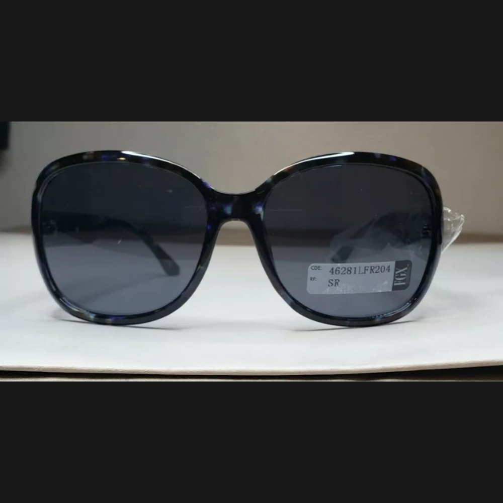 FGX Women's Oversized Rectangular Blue Tortoise Shell Sunglasses Temple Bling