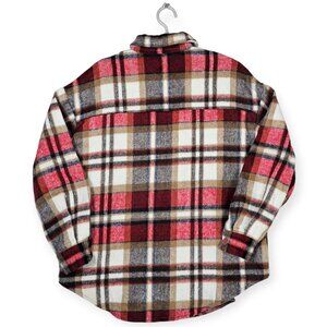 Oversized Red & Beige Plaid Flannel Button-Down Shirt Size S Dual Chest Pockets