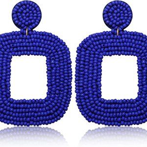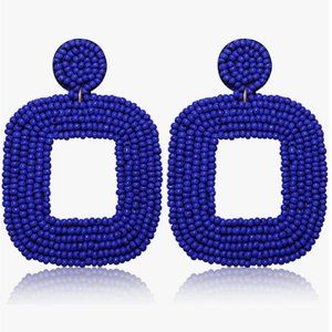 Approx 3" handcrafted post square dangle beaded earrings in royal blue