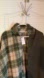 Green and tan plaid and solid green sleeve. Cozy and oversized. Size xs but doesn't feel like it.