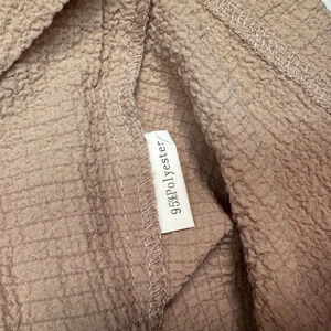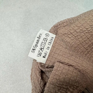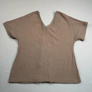Oversized Short Sleeve Button Up Top Womens Size M V Neck Textured Blouse Tan