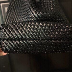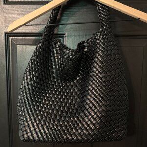 Oversized Shoulder Bag Black Braided style Interior pouch