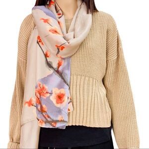 Oversized Silk Scarf Floral Print Headscarf, Neck Wrap Scarf NEW