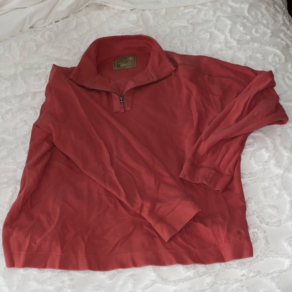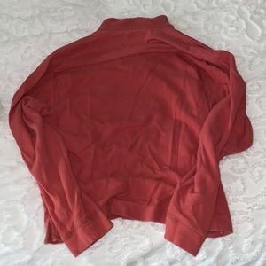 This sweater is super soft and comfy. Color is a deep coral. Actual size is XXL, but I used this as an oversized sweater look as I am usually a small/medium. Super cute with a pair of shorts. No stains or defects present :) open to offers!