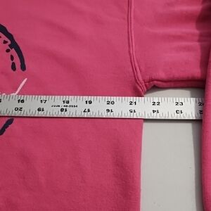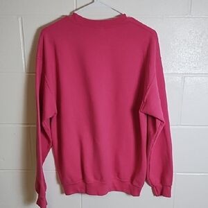 This vibrant pink crewneck sweater features a striking circular graphic on the front, adding a touch of style to its classic design. Made from a comfortable cotton blend, it offers a cozy fit with long sleeves and ribbed cuffs. Perfect for casual outings, this sweater combines comfort with a bold fashion statement. Double stitched seams
