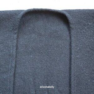 Beautiful oversized THICK wool wrap. This wrap could be worn by a man, a tall woman, a plus size individual, or anyone who likes to be bundled up in a thick cozy wearable blanket! I'm 5'4" and the back comes down to just below my knees. Excellent condition--no damage, no pet hair, no odors. The wool is soft and plush, not scratchy.