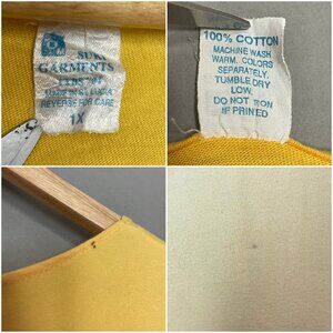 Suki Garments yellow graphic oversized tee to be used as a sleepshirt or swimsuit coverup. Curved hem. Flowers and butterflies on the graphic. Pullover style.