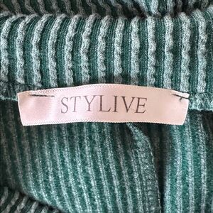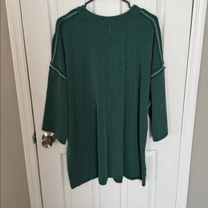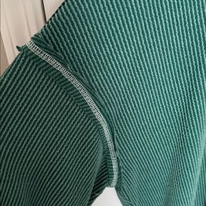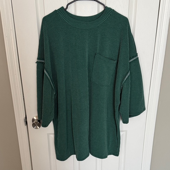 Super cute green oversized shirt. Has a ribbed design with a pocket. This is a size medium, but suuuuper stretchy and oversized. I am a true medium and this is very oversized on me. can fit up to an XL.