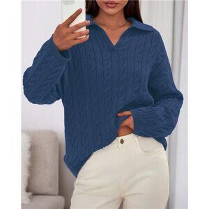 Trendy Design: Classic V-neck with chic collared style and timeless cable knit pattern.