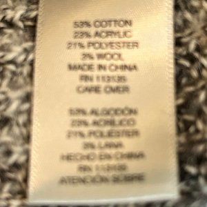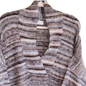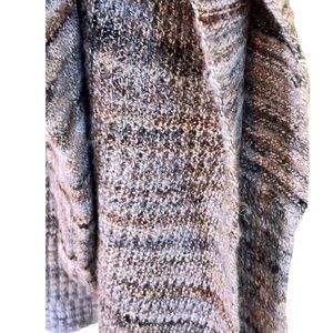 Jillian & Nicole bring you a soft, comfy, oversized cotton blend sweater to keep you warm this winter! The neutral colors in tans and greys create a faint striped pattern with a deep V neck. The sides resemble a poncho and are partially stitched with slits up each side. Great paired with jeans or leggings. Size L (oversized) EUC - worn twice