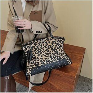 Oversized Vegan Leather Leopard Purse Women Tote Shoulder Crossbody Bag