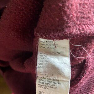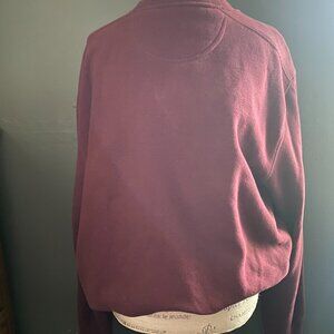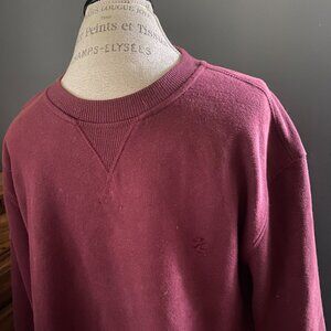 Izod Crewneck Long sleeve Pullover Sweatshirt in Maroon. Detail on the shoulder. Features logo on chest.