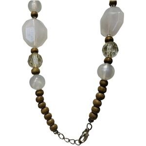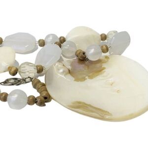 Oversized White Shell Pendant Statement Necklace 19" Icy Glass Beaded Bohemian