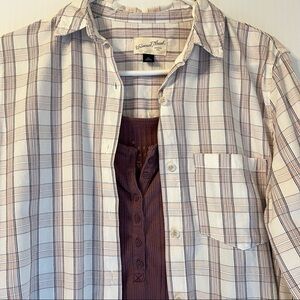 Oversized XS Plaid Button Shirt + Tank S Set Cream Plum Lightweight Layered Look