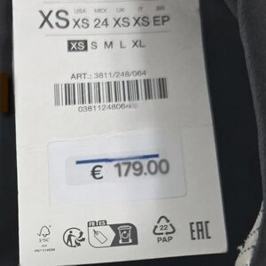 THIS JACKET IS OVERSIZED! This says "XS", but I m a size 6 (generally a M/L), and it's still baggy! It was approx. 179 Euros, which converts to approx U.S. $205.00