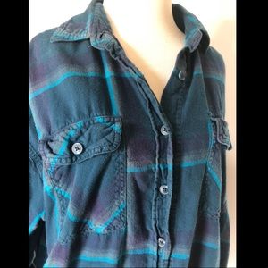 Super cozy blue plaid oversized flannel with pockets. Great with leggings or over a tee with shorts. Some piling but otherwise good used condition.