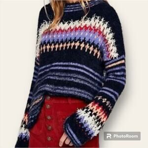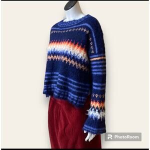 Oversized flared sleeve Fuzzy pull over Blue Sweater Size Small