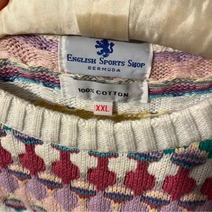 Super comfy sweater with abstract bubbles pattern in green, pink, purple, yellow, blue, and ivory. Zoomed in picture is most accurate to colors. Fits a womens size 10-12 oversized, great for layering and staying warm in fall and winter. In perfect condition.
