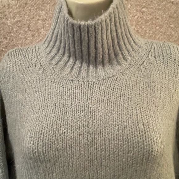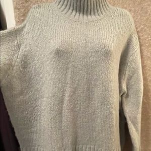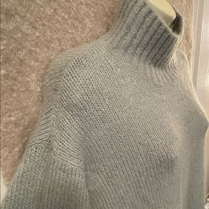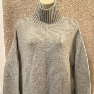 Grey oversized knit turtle neck sweater.Not itchy; not stiff. Nice.