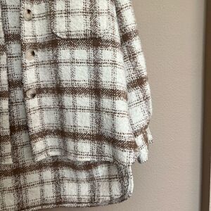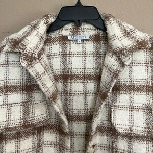 Beige plaid shacket by Cezelle! Small. Oversized fit. Button front. Chest pockets. Very warm! In great condition!