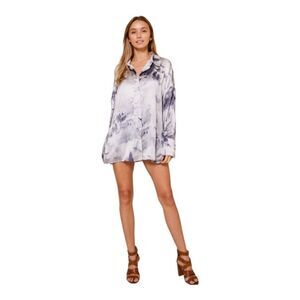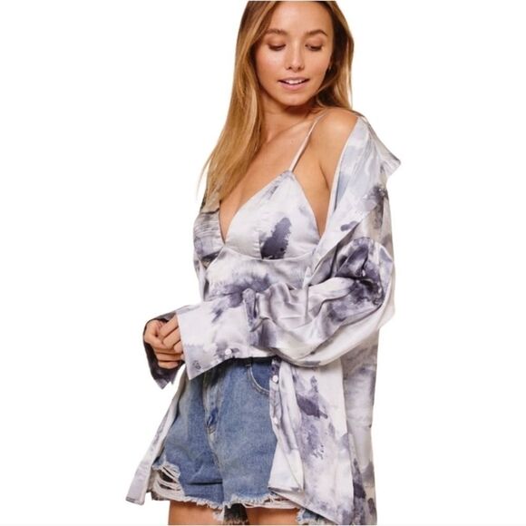 Oversized Boyfriend Button Down Top And Bralette Set.