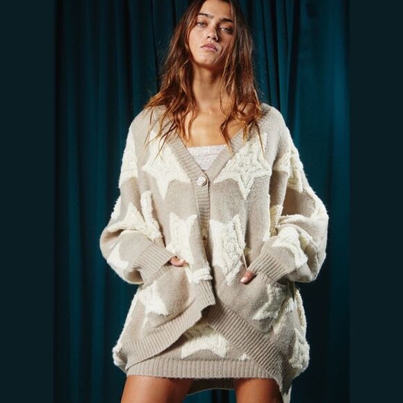 Oversized Star Pullover Sweater Cardigan Skirt Set