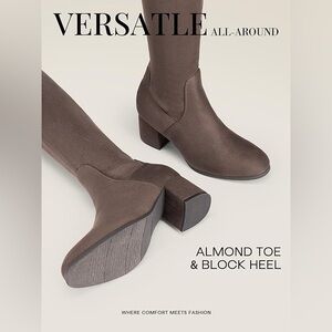 Faux suede vamp, the over-the-knee boots are smooth to touch. The slight stretch vamp helps to wrap your legs exactly.