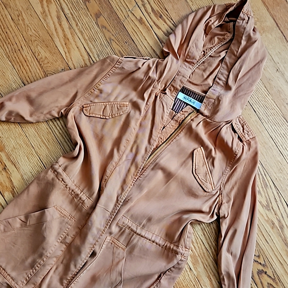 Greta condition, worn once, great color, pockets, tie on inside to shrink to waist, says xs but fits small fine. I'm 5'5 120 for reference. no flaws