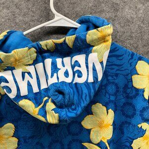 Overtime Hoodie Mens M Blue Yellow Floral Hawaiian Tropical Tiger Graphic