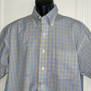Overton yellow, blue & white check wrinkle resistant cotton short sleeve shirt