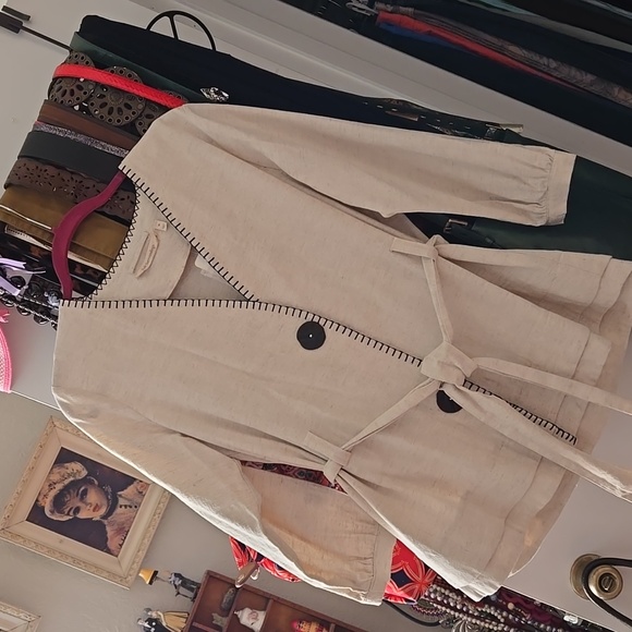 Can be dressed up or down. Nice detailing with 2 decorative buttons that snap and can be belted